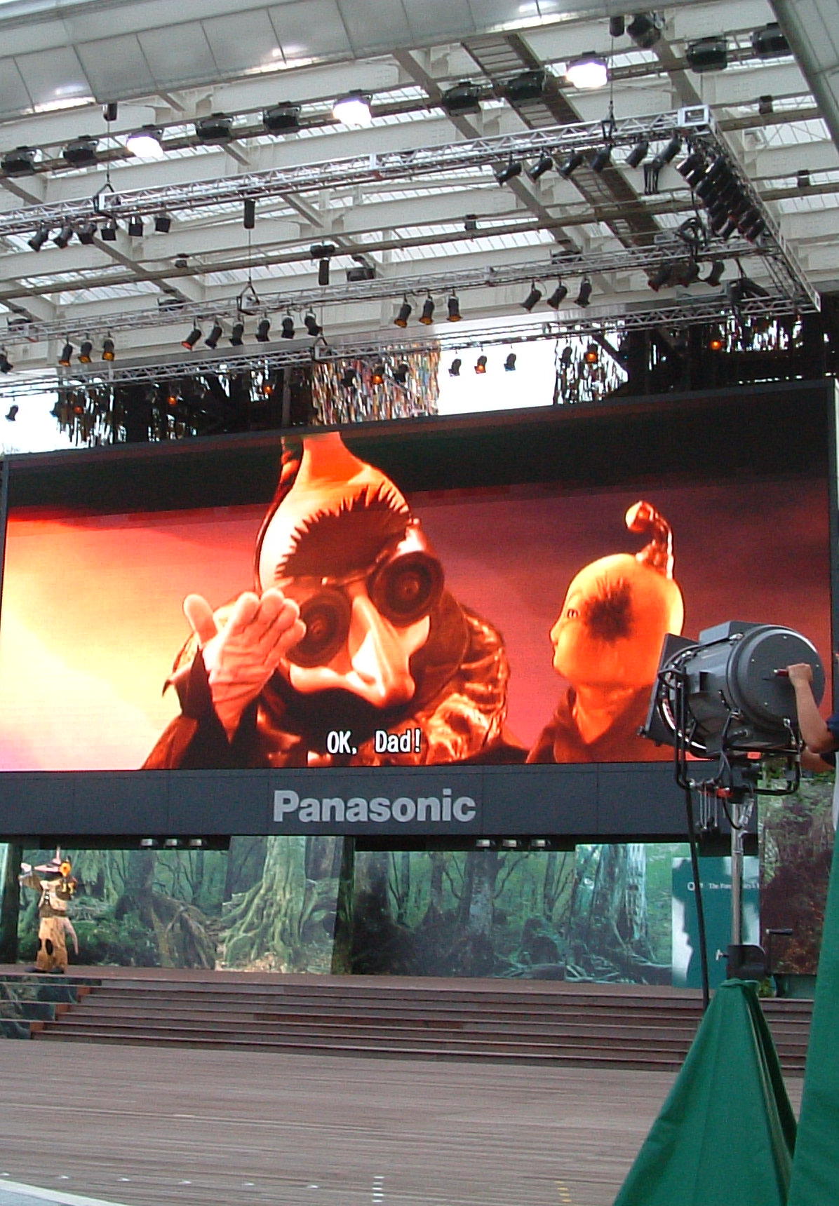 さてこの写真は、石井竜也がプロデュースした「精霊たちの森林舞踏会」。子どもにもよくわかるほのぼのとした雰囲気のミュージカル。その中にあって特に違う空気を放っていたのが、この丸めがねをかけたモンスターと、その肩に乗っかってる黄色いヨーダみたいな宇宙人。