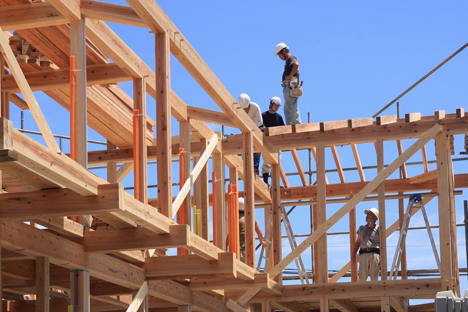 今日は上棟日。「やっとここまで」と住まい手さんは笑ってお話されました。