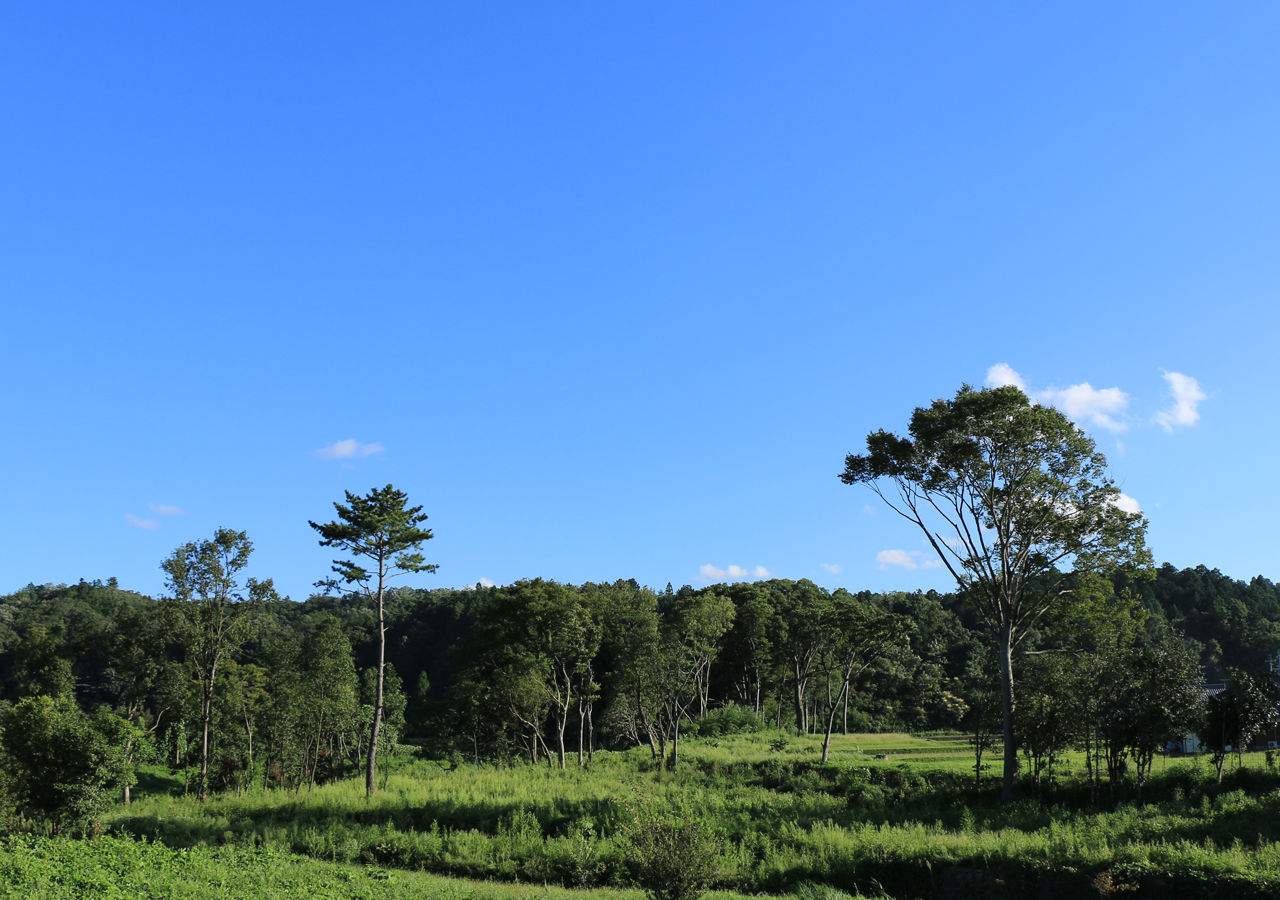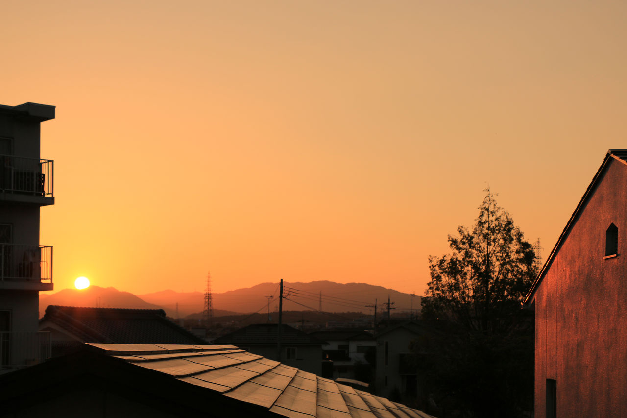 夕暮れ。先週より空は高く、山の緑もちょっと変わったような気が。