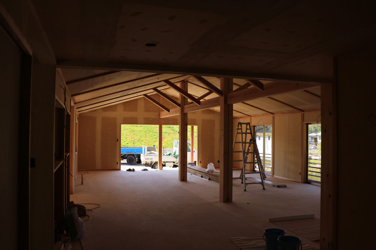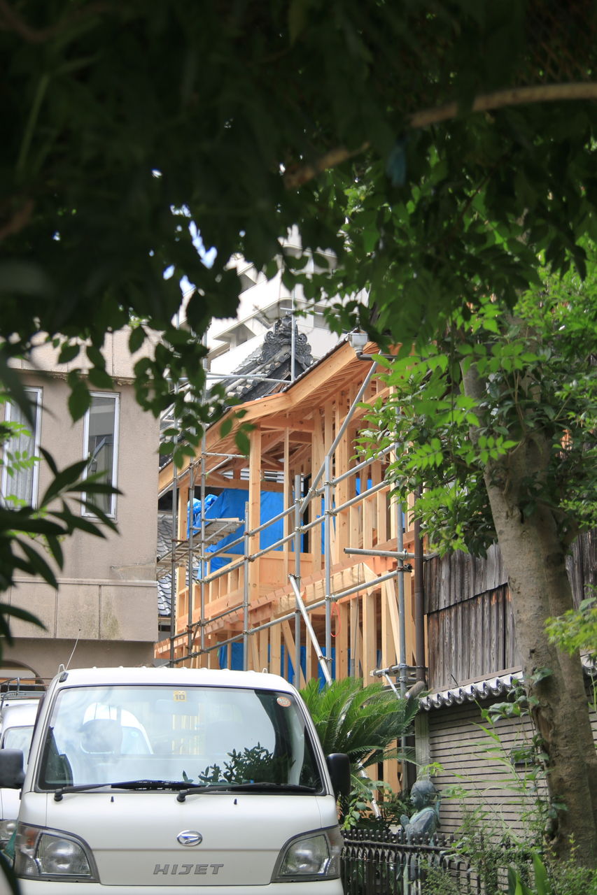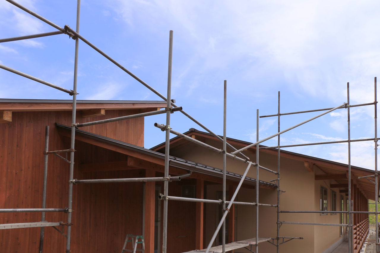 終わりが見えてきた手前の建物。今はまだ何も見えてない奥の建物。