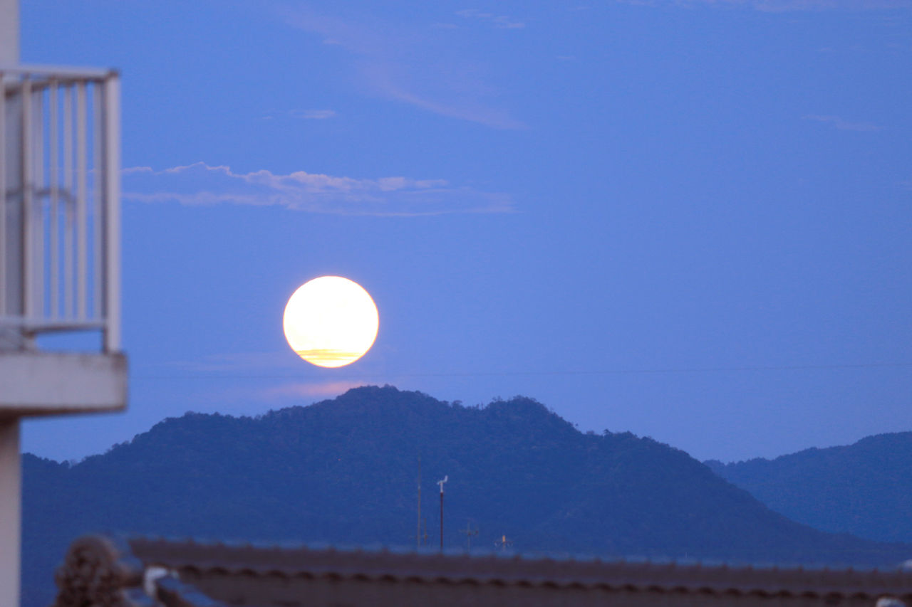 とてつもなく大きな月が出てくると思って仕事を止めて外を眺めていると、僕の想像の半分くらいの月が上ってきました。