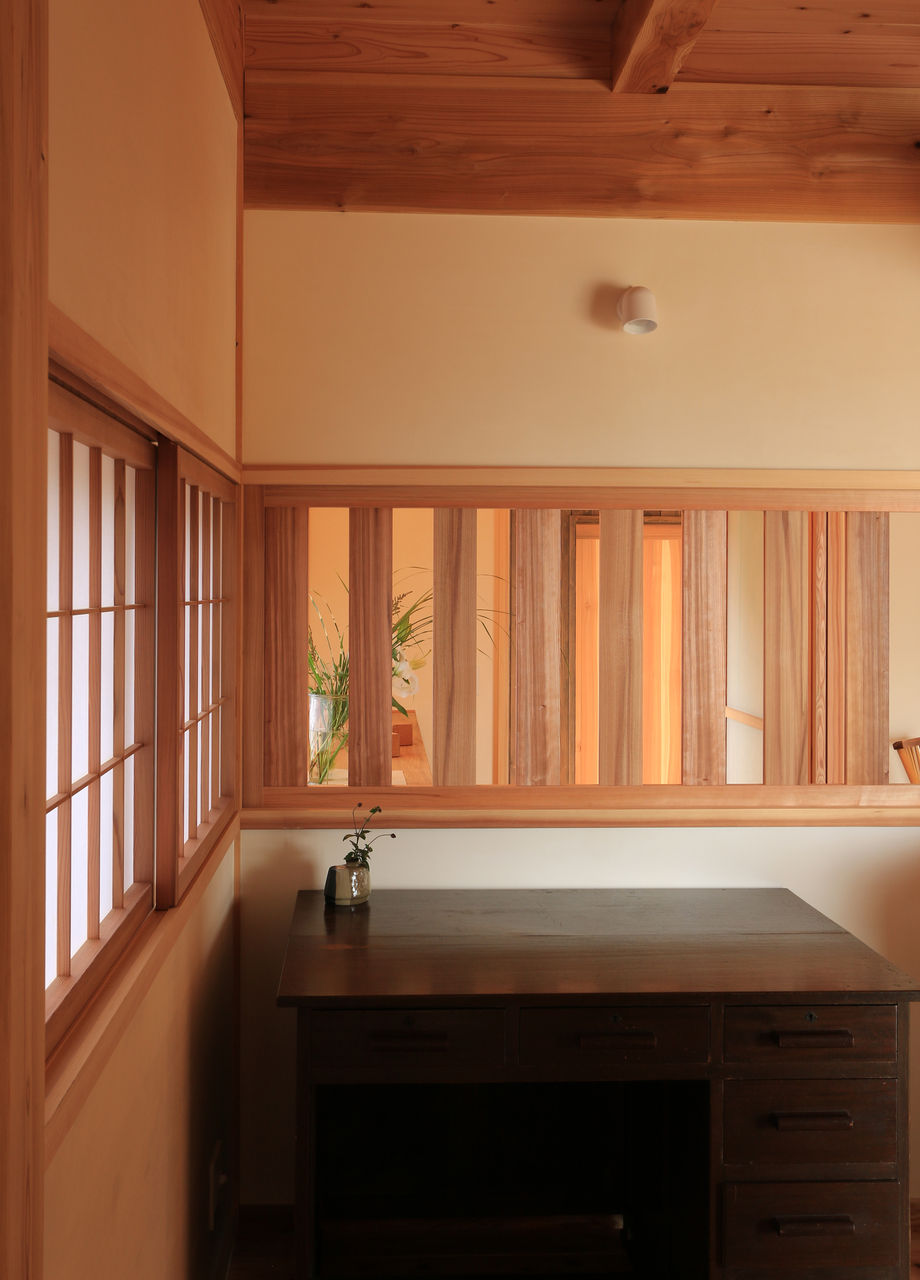 設計では新しく机を作ってもらう予定でしたが、古い机をお持ちだったのでそれを置いていただくことになりました。