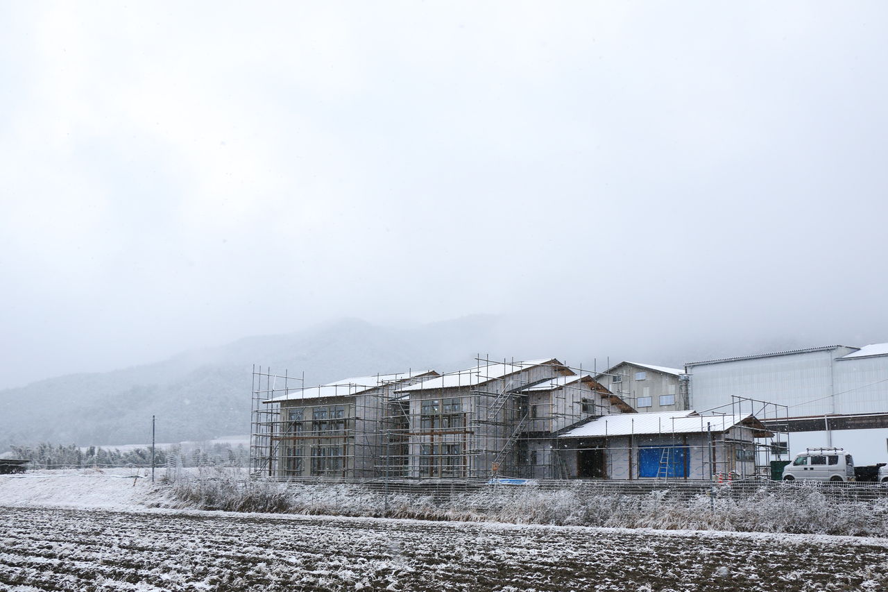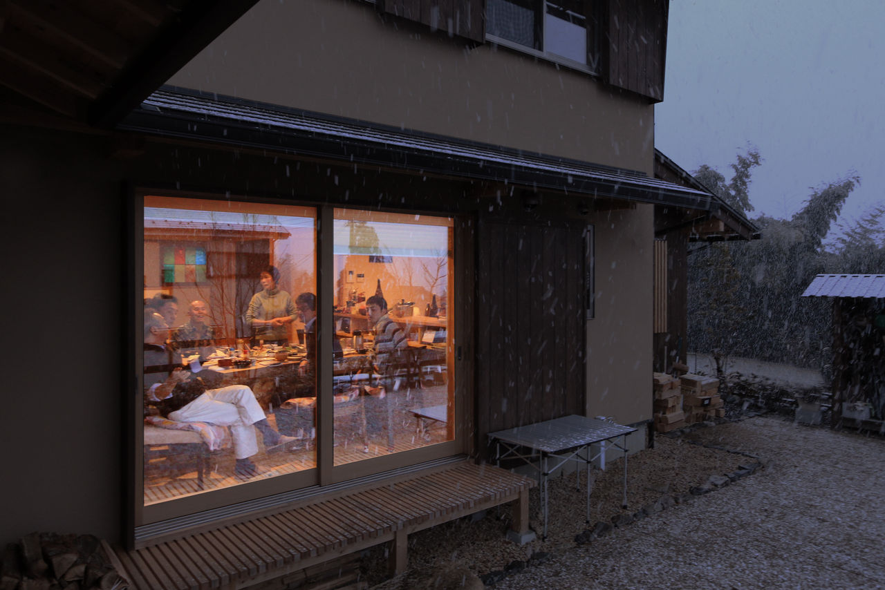 昨年完成した坂本の家に松井建設の皆さんと。雪が降る寒い日でしたが、中は暖かく話は熱く。