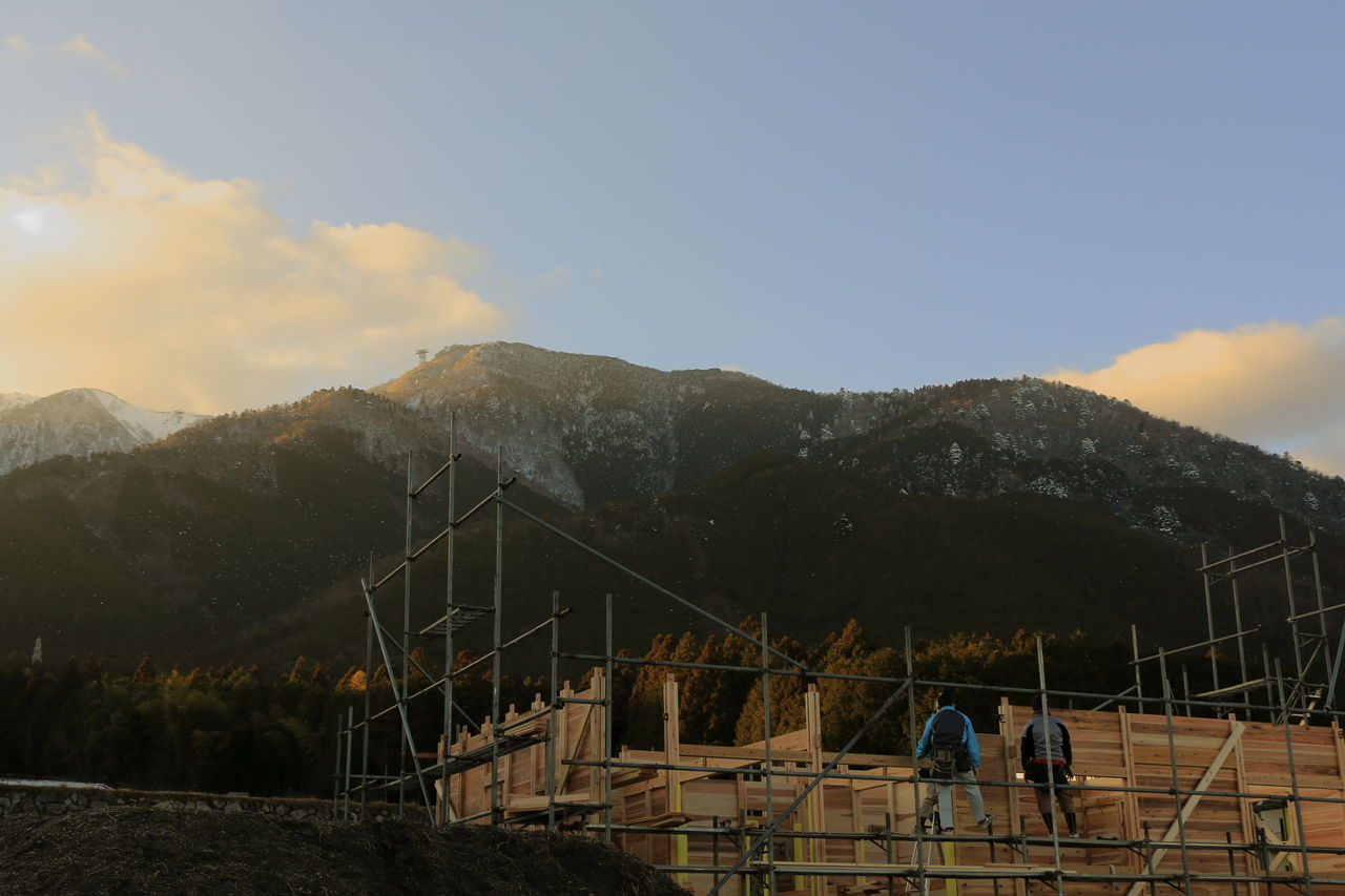 予定していた打合せが延期になったので、あいた時間に建前をしている現場を見に行ったら、それも延期になっていました。