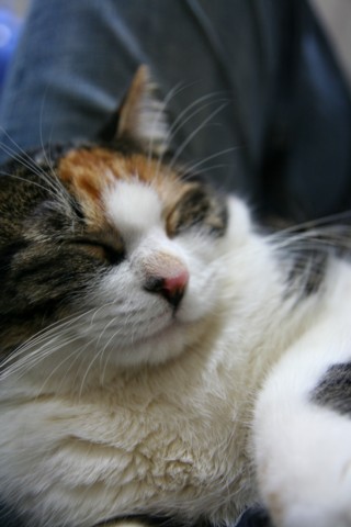 深尾夫妻が猫のみいちゃんを連れて遊びにきてくれた。みいちゃんは最初「おまえ誰?」みたいな顔をしてたけど、そのうち「ま、いいか」みたいな感じでお腹の上で丸くなって寝た。猫が温かいというのはほんとだ。心まで温めてくれる。贅沢いいませんのでずっと一緒におってください。そんな気分になった。